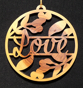 Made in Iznik, Turkey by refugees. Beautiful and delicate olive wood Love ornament. Perfect gift idea and ornament for all around your house during Christmas.